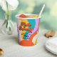 A party cup that will have you stepping back in time to the groovy era of the 1970s as you celebrate the guest of honour's 70th birthday in fun retro style. Get ready to relive the peace, love, and freedom of the hippie movement with a groovy party that's sure to transport everyone to a time of flower power and disco balls. This design has a bold colourful sunburst with wavy rays emitting their effervescent energy in the background. A groovy seventies font spells out "Hello Seventy!" in the style of that bygone era. Personalize the text template with the guest of honour's name and age. These cups are suitable for both hot and cold beverages. You can purchase them with or without lids.