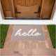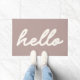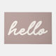This stylish doormat features a modern minimalist design of the word Hello in script lettering on a dusty mauve background.