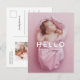 HELLO Simple Photo Overlay Birth Announcement Postcard
