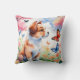 Watercolor painting of an adorable dog surrounded by flowers and butterflies.