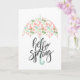 Colourful floral umbrella with "Hello Spring" text in modern script