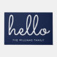Hello Stylish Script Navy Blue Custom Family Name Doormat