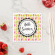 Paper napkins with an image of a summertime pattern of popsicles and ice cream in watercolors. Hello Summer written in a fun trendy font inside a round whimsical frame.