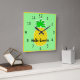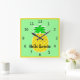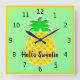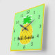 This fun square clock has a cute yellow pineapple and the words Hello Sweetie. The background is green with a yellow border. The green and yellow makes it bright, fresh and modern. The words are a template, so it's easy to change them to your own words or name if you wish.