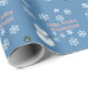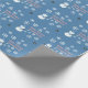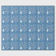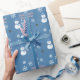 A Slice of Life and Delight presents Hello, Winter Wonderland wrapping paper with a snowman decorated with white snowflakes, pink writing, and a blue backdrop. The snowman also has a blue hat and scarf.