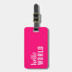 Cool customizable luggage tag with pink background / bold text. You can add your names and address to it.