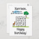 Cute and fun maze puzzle of a giraffe that needs help to find the tree is printed on custom postcards. The child's name is at the top, with the question, Can you help the giraffe find the tree? The maze is pictured with a blue cloud overhead, a tree in multi shades of green, and a giraffe standing in the green grass. Happy Birthday is written under the puzzle. All of the text can be easily customized. Young children will like the extra thought and activity that they can do for their birthday. Thank you for shopping MazePuzzles on Zazzle.