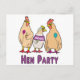 Hen Party or Hen Night shows three hens out on the town celebrating the forthcoming wedding. The bride to be wears a crown and veil and her friends are there supporting her.