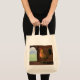 The printing came out very well, better than I had anticipated. The natural color fabric is sturdy with strong seams and comfortable handles. This tote fits easily over my shoulder. As it is filled, the bottom flattens out--very cool! I would buy this product again. This grocery tote holds a lot of groceries! The image quality was very good. The colors were a little darker than I had expected. The darkness may have been due to printing on a natural color fabric rather than on white. The cat design is attractively centered on the tote. The spirit of the design is very lively, just as it appears on the Zazzle website.