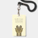 Exotic henna mehndi hands massage therapy business promotional badge for wellness fairs and demonstrations. Add your business name. Sleek slim typeface.