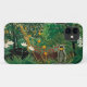 Henri Rousseau Exotic Landscape iPhone case. Oil painting on canvas from 1910. French painter Henri Rousseau fell in love with tropical scenes during his world travels. Exotic landscape is one of his famous primitivist jungle paintings feauturing monkeys playing in the forest. Two monkeys hang from an orange tree knocking fruit down to their friends below, while a larger monkey snacks on an orange nearby. The tropical foliage is rich, dense, and green, featuring white lilies and other tropical flowers. A pretty gift for fans of Henri Rousseau, jungle paintings, tropical landscapes, primitivism, and French art.