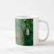Henri Rousseau Exotic Landscape mug. Oil painting on canvas from 1910. French painter Henri Rousseau fell in love with tropical scenes during his world travels. Exotic landscape is one of his famous primitivist jungle paintings feauturing monkeys playing in the forest. Two monkeys hang from an orange tree knocking fruit down to their friends below, while a larger monkey snacks on an orange nearby. The tropical foliage is rich, dense, and green, featuring white lilies and other tropical flowers. A pretty gift for fans of Henri Rousseau, jungle paintings, tropical landscapes, primitivism, and French art.