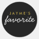 "Her" Favourite Snack Round Sticker in Black Gold and white Adhere this sticker to the bride's favourite snack! Stickers for any of your wedding occasions - engagement party, rehearsal dinner, ceremony, cocktail hour, wedding reception, Sunday brunch, bridal shower, bachelorette party, hens party and more! Show of his and her favourite snack or treat as a favour for your guests. Available in a variety of sizes colours and fonts