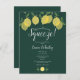 Featuring lemons greenery on an emerald green background, this fun botanical bridal shower invitation can be personalized with your special event information. Designed by Thisisnotme©