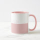 A feminine pink and white coffee-mug personalized with name and profession (architect)