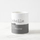 A feminine pink and white coffee-mug personalized with name and profession