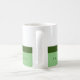 Nice green and white coffee-mug personalized with name and profession (landscaper)