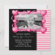 A super cute girly design with pink stripes, flowers and a pink swirly heart frame with photo. Line by line personalization.