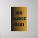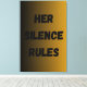 A bold and minimalist text-based artwork with the powerful phrase “Her Silence Rules.” This piece reflects strength, confidence, and inner power through silence. The gradient gold and black background adds elegance and sophistication, making it a perfect addition to modern interiors, offices, bedrooms, or spaces that celebrate empowerment and resilience. Ideal as a motivational gift for women who embody quiet strength.