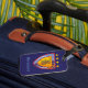 Emblazon your surnname on a colourful heraldic crest. This design features elements that speak of days of yore – in shades of royal blue, gold and red, a shield and two scimitars border a central shield to display your surname initial. Stars and three pheon complete the design.