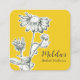 A botanical style business card featuring echinacea/coneflowers drawn with black ink on a warm yellow background with a space for business name on the front. On the back is a soft shade of grey with areas to put your business details.