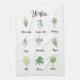 Herbs watercolor kitchen towel. Kitchen, herbal, botanical leaves. Rosemary, mint, thyme, lemon balm, dill, sage, parsley and more.