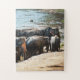 Herd of Elephants with Baby in Water Jigsaw Puzzle