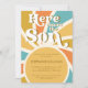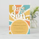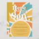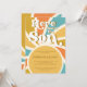This cheerful sun-themed boy's baby shower invitation features "Here Comes The Son" in stylish typography on a colourful sunburst background.