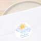 This cute baby shower sticker is decorated with a yellow watercolor sun, clouds, and stylish blue typography.