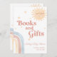 Featuring a whimsical smiling sun and a delightful watercolor rainbow, this "books and gifts" sign sets the tone for a joyful gathering. Personalized with the mom-to-be's name and location of event, it adds a special touch to your event decor. Crafted with retro fonts and warm neutral colours, it exudes both nostalgia and modern elegance, perfect for welcoming guests to celebrate the upcoming arrival. Let's make your baby shower truly memorable with this personalized "books and gifts" sign, spreading warmth and excitement to all who attend! Part of the 'Here Comes the Son' baby shower collection.