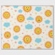 This is cute smiling cartoon suns pattern in different happy expressions with clouds and stars. It's great wrapping paper for baby shower with sunshine theme