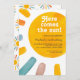 This cute child's first birthday invitation is decorated with a watercolor sun and stylish retro typography.