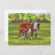 Hereford Cow & Cute Calf in Summer Pasture Postcard