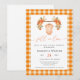 Make your baby shower unforgettable with this cute, editable, floral orange gingham invitation today!