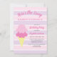 Here's the scoop: Summer ice cream birthday party invitation with pink and purple striped background