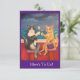 Two cats sit on bar stools and toast each other. The ocean and night sky are in the background.