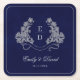Heritage Floral Crest Navy Monogram Paper Napkin Square Paper Coaster