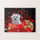 C'est mon mignon petit chien maltais de Chien Chien. Il est assis dans une grande boîte cadeau avec une douche de coeur rouge !