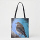 This handy bag features a hermit thrush on a blue background. The image is from my own original painting.