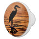 This striking ceramic door knob features a Great Blue Heron (ardea herodias) in silhouette, fishing in the shallow waters of Cayuga Lake in Ithaca, NY which is one of the Finger Lakes of upstate New York. A beautiful orange, yellow and gold sunset colours the waves and ripples in an abstract pattern.