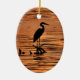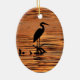 This fine art ornament presents a Great Blue Heron (ardea herodias) in silhouette, fishing in the shallow waters of Cayuga Lake in Ithaca, NY which is one of the Finger Lakes of upstate New York. A beautiful orange, yellow and gold sunset colours the waves and ripples in an abstract pattern. Perfect for the Christmas holidays or any time of year.
