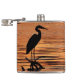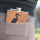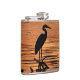 This fine art flask presents a Great Blue Heron (ardea herodias) in silhouette, fishing in the shallow waters of Cayuga Lake in Ithaca, NY which is one of the Finger Lakes of upstate New York. A beautiful orange, yellow and gold sunset colours the waves and ripples in an abstract pattern.