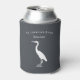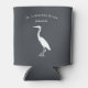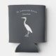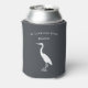 Show your regional pride with this simply designed Heron / Egret canned beverage cooler that features a silhouetted Heron standing with one leg bent, with customizable name and river, lake or region name - graphic and text are white on a customizable dark blue grey background - by katz_d_zynes