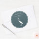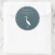 These simply designed round wedding thank you stickers feature a silhouetted heron / egret and your custom text in white on a customizable dark teal blue background - by katz_d_zynes