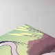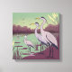 The artwork uses a soft pastel color palette: a green background, muted tones for the birds, a deep shoreline shade, and warm yellow highlights for catai, grasses and a distant sun .