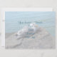 While walking on the rocks at the south jetty in Barnegat Light we came across this wild herring gull, resting on a greyish rock and basking in the warm summer sun. This adult seagull has a white head with grey back, grey wings and white tail. White spots on black wing tips are visible. Individual wing feathers can be seen in this close up photo. Calm blue waters of the Atlantic Ocean can be seen in the background.