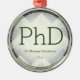 Herringbone Green White PhD Graduation Name Year Metal Ornament