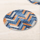 Herringbone Pattern in Navy Blue and Orange Round Paper Coaster
