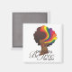 This magnet is from my Hers and Hers line. It is an image of an African American woman. She has natural hair, with rainbow stripes. The rainbow stripes represent the LGBT flag.