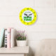 Cette drôle d'horloge murale dit que je ne suis pas en retard, je suis sur Irish Time, avec des lettres de nouage celtes en vert, des chiffres en arrière sur un arrière - plan jaune